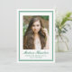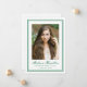 Celebrate your graduate’s milestone with this elegant green photo graduation announcement, featuring a refined double border frame that adds timeless structure and a classic academic touch. The graduate’s portrait is centered within the clean, balanced layout, creating a polished focal point, while their name is displayed below in graceful script for a personal and sophisticated finish. Their school name and graduation year appear beneath in traditional serif lettering, completing the formal and cohesive design. The back provides space for a personalized announcement message, perfect for sharing their achievement and expressing your pride with family and friends. Ideal for high school and college graduates, this green graduation announcement offers a timeless and meaningful way to commemorate their accomplishment.