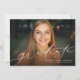 Célébrez votre diplôme d'études secondaires ou collégiales avec ce faire-part horizontal de graduation en une photo qui comporte un script élégant et moderne sur le devant et un bleu marine et blanc rayé arrière (cliquez sur "personnaliser" pour le modifier). L'aspect calligraphie du mot "gradué" sur le devant est assez délicat pour que votre photo senior soit la cible principale.