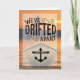 Quelque chose d'un peu différent pour attirer ces clients dormants et les clients vers votre entreprise. Un bateau dérivant au coucher du soleil est jumelé avec We've Drifted Apart typographie pour une carte nautique avec votre nom d'entreprise sur l'ancre.