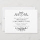 Carte d'annonce de diffusion en direct d'un mariage avec monogramme de feuille dessinée à la main en noir et blanc et code QR. Cette carte simple mais élégante fait partie de l'ensemble de mariage assorti avec monogramme de feuille dessiné à la main en noir et blanc. Idéal pour informer vos invités d'un événement de diffusion en continu de mariage en raison d'un mariage à destination ou éloigné ou en raison de circonstances imprévues. Dessin de feuille entourant vos initiales de monogramme et conception de mots. D'autres options de couleur et produits assortis sont disponibles. Dessin et conception originaux par www.mylittleedenweddings.com