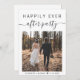 Faire-part de mariage minimaliste moderne pour une fugue ou une petite annonce de mariage et invitation à la réception. Le devant présente votre photo du jour du mariage et "Happily Ever After Party" dans un mélange de typographie simple et d'écriture tendance avec fioritures. Sous votre photo, ajoutez vos prénoms et la date de votre mariage. Au verso, personnalisez votre annonce de mariage et votre invitation à la réception avec plus de détails, entrez l'adresse de votre site web de mariage pour créer un code QR que les invités pourront scanner pour voir vos photos de mariage, tous les détails et répondre en ligne, et ajoutez vos noms dans une écriture semblable à une signature.