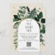 Moderne, Nous avons dit oui, Elegant Beige Botanical Greenery mariage photo Faire-part avec code QR. Les destinataires peuvent analyser le code-barres qui se rapporte à votre site Web mariage qui affiche vos photos et plus encore.