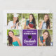 Ce collage photo moderne violet de troisième cycle présente vos photos préférées de 5 étudiants. Ce faire-part de deuxième cycle présente une typographie blanche de classe de votre lycée ou nom de collège pour la classe de 2025. Customisez avec votre année de graduation au-dessus du casquette gris noir pour les grandes cartes.