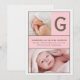 Cette faire-part de naissance contient deux photos de votre bébé et son initiale en marron.