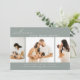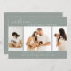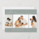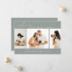 Cette simple carte de montage photo moderne est parfaite pour partager la bonne nouvelle de l'arrivée de votre bébé. Il présente un collage photo avec trois photos sur un arrière - plan vert sauge poussiéreux. Ajoutez le nom et les statistiques de naissance de votre bébé pour personnaliser la carte.