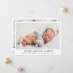 Carte de naissance photo élégante et simple pour présenter votre nouveau-né bébé garçon avec une grande photo de nouveau-né en paysage avec un texte gris foncé de style classique / noir doux (la couleur peut être personnalisée) qui peut être personnalisé avec un nom et les informations de naissance. Le verso de la carte comprend un collage de six (6) photos supplémentaires de forme carrée. Conseil photo : recadrez votre photo avant à une taille de 4 x 6,5" et vos photos arrière à une taille carrée avant de les télécharger sur le site.