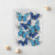 Vertical composition of réalistes, blue and white morpho butterflies on gray textured background. Morphine bleu.