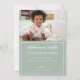 Fêtez l'arrivée de votre fils ou de votre fille avec cette carte faire-part d'adoption douce. Doté d'un arrière - plan vert sage avec d'élégantes polices de serif et de script, et d'une conception de bande sage et blanche sur le dos avec les mots : "Pas la chair de ma chair, ou des os de mes os, mais par le plan de Dieu, miraculeusement la nôtre." Tout le texte est personnalisable.