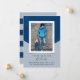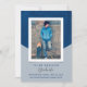 Faire-part photo moderne de graduation avec un arrière - plan géométrique incliné. La partie bleue de l'arrière - plan a une texture riche. La photo prend la scène centrale avec une large bordure blanche et une ombre subtile en dessous. Design Unisex parfait pour un diplôme d'études secondaires ou collégiales.