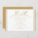 Cette invitation pour le 50e anniversaire de mariage avec monogramme comporte quelques lignes de couleur or sur les côtés d'épaisseurs variées. Le design comprend également un séparateur orné de couleur or qui apparaît directement sous les initiales du couple. La zone de fond du texte est blanche et j'ai utilisé la couleur pour le texte. Le dos de l'invitation est également de couleur or et peut être utilisé uni ou avec le monogramme du couple en blanc. Cette invitation de 50e anniversaire de mariage dorée est prête à être personnalisée et convient à quiconque souhaitant une invitation avec un monogramme simple.