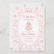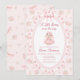 Célébrez l'arrivée de votre petit bout avec cette invitation de baby shower romantique et vintage inspirée par un lapin. Caractérisé par un lapin rose tendre vêtu d'un délicat tutu, entouré de détails floraux doux et d'un cadre ornemental élégant, ce design capture un charme intemporel et une beauté féminine. La palette de pastels doux de rose blush associée à des roses délicates et à des accents inspirés de la dentelle, crée une esthétique de jardin de rêve parfaite pour une baby shower pour fille. Articles assortis disponibles.