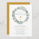 Faire-part de baptême à couronne florale d'eucalyptus | Modèle élégant de cérémonie religieuse de verdure. Invitez famille et amis à célébrer le jour sacré du baptême de votre enfant avec ce faire-part élégant à couronne florale d'eucalyptus. Présentant une délicate verdure à l'aquarelle et des accents floraux doux, ce modèle personnalisable est parfait pour les cérémonies de baptême chrétiennes, catholiques et protestantes. Personnalisez avec le nom de votre enfant, la date de l'événement, le lieu de l'église et les détails de RSVP. Idéal pour les bébés garçons, les bébés filles ou les célébrations neutres en matière de genre. Disponible en tant qu'invitation imprimée ou téléchargement numérique pour s'adapter à votre style de planification d'événement.