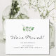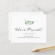 Faites savoir à votre famille et à vos amis que vous avez déménagé avec ces annonces modernes et élégantes. Elles sont dotées d'une simple aquarelle de verdure et d'une typographie de script qui dit "Nous avons déménagé !". Utilisez l'outil de conception pour modifier la taille, le style ou la couleur du texte. Aquarelle originale © Michele Davies.