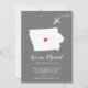 Faire-part mobile moderne avec l'état de IOWA avec un coeur rouge & avion mis sur un arrière - plan gris. La couleur arrière - plan peut être changée facilement en cliquant sur personnaliser, puis cliquez pour customiser plus loin pour voir notre sélecteur de couleurs. De là, vous pouvez aussi déplacer l'avion et le coeur! Contactez notre magasin si vous avez besoin d'aide ou si vous avez besoin d'un autre état.