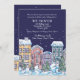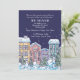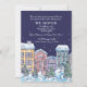 Une charmante scène hivernale avec des maisons enneigées par nuit enneigée. Convient comme un faire-part en mouvement, fête de Noël, Open House et plus.