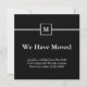Ce faire-part mobile peut être customisé avec votre monogramme, nom et nouvelle adresse. En haut, il y a un carré pour votre monogramme. Le texte est blanc. L'arrière - plan est noir.
