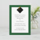 Faire-part classique de graduation avec casquette noir et goût or sur arrière - plan vert.