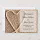Une annonce de save the date de mariage rustique en toile de jute. Avec une belle photographie d'un collier de perles en forme de cœur sur toile de jute. Personnalisez facilement avec vos coordonnées ! Les créations sont des graphiques imprimés à plat -- PAS DE TOILE DE JUTE RÉELLE.