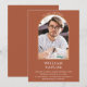 Avec une simple arche dorée sur fond terracotta, ce faire-part de fête de remise de diplôme élégant peut être personnalisé avec votre photo spéciale de diplômé. Conçu par Thisisnotme©