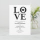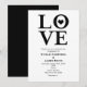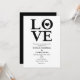 Faire-part de fiançailles de mariage noir et blanc LOVE. La couleur de fond peut être changée en n'importe quelle couleur.