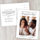 Carte postale de faire-part de fiançailles moderne minimaliste avec votre photo, « Le début de notre bonheur éternel » dans un mélange de typographie simple et d'une écriture élégante et vos prénoms au recto. Au verso, personnalisez votre message de faire-part de fiançailles et ajoutez nos noms dans une écriture qui ressemble à une signature.
