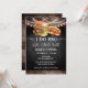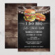 Faire-part de fiançailles pour couple marié avec invitation à BBQ. Facile à personnaliser. Tout le texte est ajustable et facile à modifier selon vos besoins. Éléments de fond rustique avec guirlandes lumineuses. Tourbillons et fioritures amusants sur tableau noir. Graphiques aquarelle de hamburger et de hot-dog. Conception pour barbecue dans le jardin ou dans un bar. Tous âges, il suffit de changer le texte.