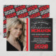 Red & Silver Grey Modern Chalkboard Invitation à la graduation - 1 Photo Classe Répétante Année Précédente Double face // Inclut Enveloppes