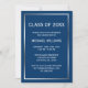 Annoncez votre graduation en style avec cette invitation classique de graduation bleu marine et faux argent. Parfait pour un baccalauréat, un diplôme d'études supérieures ou une fête de fin d'études supérieures ! Les dessins sont des illustrations/graphiques à papier plat - PAS VRAIMENT FOIL D'ARGENT.