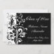 Chic et élégant graduation ou invitation à la fête présente arrière - plan noir avec des tourbillons et des rouleaux de curling blanc fantaisie. Un joli style d'invitation, girly mais classe et formel. Le noir et blanc à contraste élevé apporte une touche parfaite à la diplômée de n'importe quelle majeure, classe ou année.