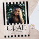 Faire-part moderne et rétro de graduation photo avec élégante typographie art déco en acrylique.