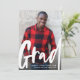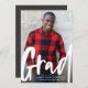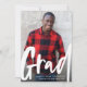 Célébrez votre diplôme d'études secondaires ou collégiales avec ce faire-part vertical de diplôme en une photo. Le script moderne "grad" sur l'avant en blanc est parfait pour un gris branché. Le dossier est gris fusain, mais la couleur peut être changée en n'importe quelle couleur d'école en cliquant sur "personnaliser".