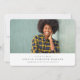 Célébrez votre diplômé avec ce classique et simple faire-part de graduation en une photo. Le type en dessous de la photo horizontale comprend beaucoup de place pour le nom du diplômé, collège ou lycée et année en chasseur vert, qui correspond à l'arrière de la carte. La couleur noire peut être ajustée à n'importe quelle couleur de l'école en cliquant sur "Customiser plus loin".