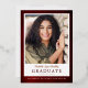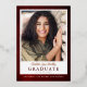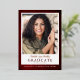 Moderne Elegant Red Foil Graduation Faire-part est parfait pour le baccalauréat ou le diplômé de l'université qui est à la recherche d'une carte élégante mais tendance et simple. Comprend de l'espace pour 2 photos, une sur le devant et une sur le dos. Personnalisez le texte pour lire ce que vous voulez. Exemple illustré avec feuille d'or rose. Choisissez l'argent ou l'or pour mélanger vos métaux !
