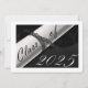 Carte de graduation en noir et blanc avec diplôme et année de graduation dessus. Le dos est un arrière - plan noir avec des lettres blanches pour les annonces de graduation.