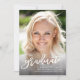Annoncez votre graduation avec ce faire-part design de graduation photo avec le mot "Graduate" dans un script de brosse tendance en blanc contre un dégradé foncé partiellement transparent pour le contraste. La carte est recouverte d'un motif orange et blanc. Personnalisez-le en remplaçant le texte de l'espace réservé et en remplaçant l'exemple/l'espace réservé par votre propre photo. Pour plus d'options comme changer la police, la taille/la couleur du texte ou l'espacement entre les lettres, cliquez sur le bouton "Personnaliser". *Veuillez noter que le filigrane Zazzle qui apparaît dans l'aperçu du zoom n'apparaîtra PAS sur le produit imprimé final © Rosewood et Citrus