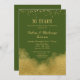 Une élégante invitation de fête d'anniversaire de mariage vert olive et or avec poussière de confettis dorés en haut et glamour doré en bas.