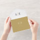 Cette invitation de mariage chic et minimaliste tout-en-un peut être personnalisée avec vos initiales de monogramme et les informations de votre jour de mariage. L'invitation comprend une carte RSVP perforée avec le code QR de votre site web de mariage. Conçu par Thisisnotme