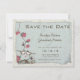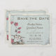 Faire-part de mariage vintage à damas avec mésange et fleurs de cerisier