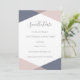 Un design moderne et chic avec des formes géométriques qui se chevauchent pour créer différentes nuances de rose et de bleu sur un fond blanc pur avec monogramme personnalisé.