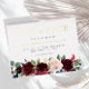 Faire-part de mariage à l'aquarelle florale bordeaux et blush avec carte postale d'invitation à feuille d'or