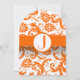 Faire-part de mariage élégant et vintage à monogramme orange damask - Présenté avec des lettres orange et gris, mais vous choisissez la couleur des polices.