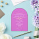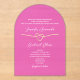 Un faire-part de mariage acrylique audacieux et moderne en rose chaud vibrant, avec une élégante typographie blanche et or avec un motif coeur et ruban. La forme en arc et le matériau acrylique translucide offrent une sensation élégante et haut de gamme qui donne une impression durable. Parfait pour des fêtes glamour, des fêtes à la mode ou des mariages de destination, cet invitation allie des couleurs à la mode et une texture luxueuse. Customisez tous les textes pour votre événement et faites découvrir à vos invités une présentation chic et moderne.