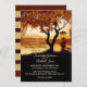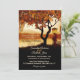 Elégante invitation de mariage avec une peinture d'arbre aux couleurs d'automne festives donnant sur un lac. Une lanterne avec une lueur chaleureuse ajoute à l'atmosphère romantique. Cette invitation a également une carte RSVP et est également disponible en taille carré.