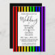 invitations de mariage personnalisées : avec une bordure à motif rainbow stripe. Cette invitation de mariage attrayante mais classe fait un excellent ajout à une collection de mariages de style uptown rity. Le texte personnalisé comprend les noms, la date et l'heure, l'emplacement et les informations de contact. La couleur Arrière - plan est également changeable si vous désirez un coup de pied supplémentaire.