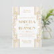 Invitation Art Déco moderne en blanc et or. Cliquez sur "Customiser" pour ajouter du texte ou modifier les polices, les couleurs, les tailles et la couleur de l'arrière-plan.