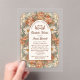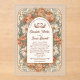 Elégant faire-part de mariage floral Art nouveau dans les pêches, les verts et la Bourgogne.