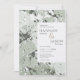 Ces faire-part de mariage de 5" x 7" présentent un design de feuilles abstraites dans des nuances de sauge poussiéreuse, d'algues et de sauge brumeuse avec des espaces réservés, "Ensemble avec leurs familles, veuillez rejoindre," les noms de la mariée et du marié, "pour leur mariage," date, heure, nom et adresse du lieu de mariage, "réception à suivre."