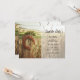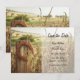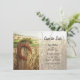 Cette annonce de mariage comprend un poteau de clôture avec un fer à cheval rustique dans un cadre charmant de ferme à la campagne.