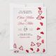 Faire-part blanc avec des cœurs rouges disposés de manière élégante et géométrique, simple et pour les amoureux des cœurs romantiques, et une ligne rouge et noire pour paraître plus cohérent. Profitez de faire-part de mariage attractifs et commandez maintenant