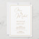 Faire-part de mariage blanc avec texte or